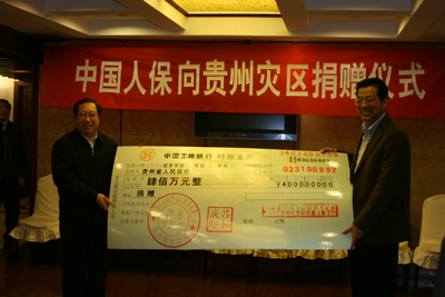 王毅总裁代表中国人保向贵州省人民政府捐款400万元